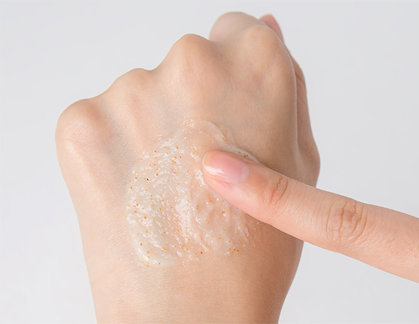 + Các hạt tẩy tế bào chết của sản phẩm có nguồn gốc từ tự nhiên (chiết xuất từ hạt óc chó xay nhuyễn và tinh dầu hạt nho) giúp loại bỏ tế bào chết trên da nhưng không làm đau rát da, đem lại làn da mềm mại và mịn màng hơn.