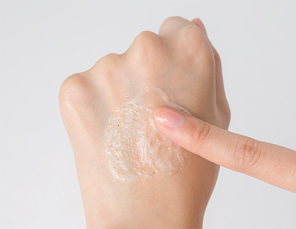 - Các hạt tẩy tế bào chết của sản phẩm có nguồn gốc tự nhiên (chiết xuất từ hạt gạo và hạt óc chó xay nhuyễn) giúp loại bỏ tế bào chết da nhưng không làm tổn thương da.