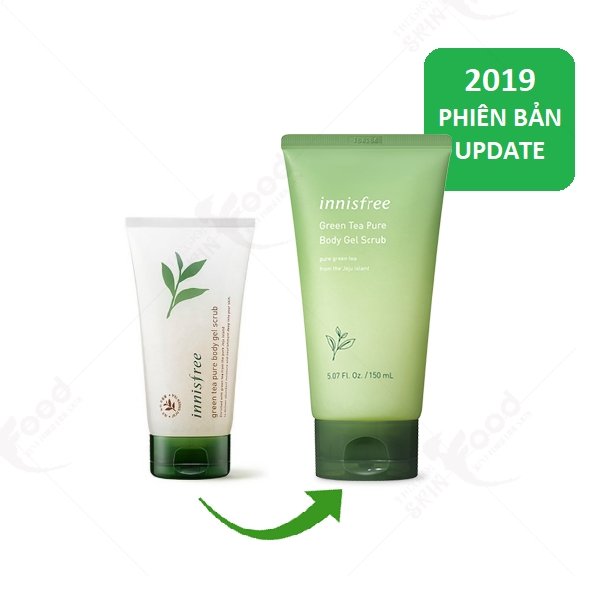 - Tẩy tế bào chết toàn thân trà xanh siêu xịn của Innisfree Green Tea Pure Body Gel Scrub đã có phiên bản mới với thiết kế màu xanh đặc trưng của trà xanh.