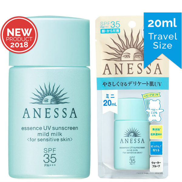 Kem chống nắng Shiseido Anessa Mild Milk màu vàng dành cho da dầu, xanh nhạt dành cho da nhạy cảm đã ra mắt phiên bản mới từ năm 2018, nối tiếp thành công của dòng sản phẩm Aqua Booster trước đây vừa bảo vệ làn da một cách hiệu quả và toàn diện với hai công nghệ Aqua Booster và công nghệ dàn trải kem đều 360 độ, vừa nuôi dưỡng làn da mềm mượt, mịn màng với 50% thành phần dưỡng da được chọn lọc kĩ lưỡng. Đây là dòng kem chống nắng không chứa cồn, paraben, công thức an toàn cho cả trẻ em.