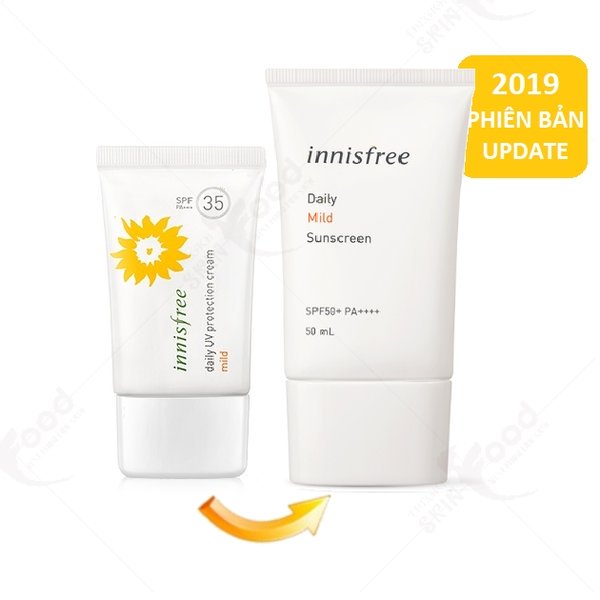 Kem chống nắng dưỡng ẩm hằng ngày Innisfree Daily UV Protection Cream Mild SPF50+ PA++++ là sản phẩm mới với nhiều cải tiến hơn so với phiên bản cũ Kem chống nắng hằng ngày phù hợp với mọi loại da Innisfree Daily UV Protection Cream Mild SPF35 PA++. Khả năng được nâng cao hơn, thời gian bảo vệ cho da cũng được tăng lên đáng kể. Từ SPF35+ lên đến SPF50+.