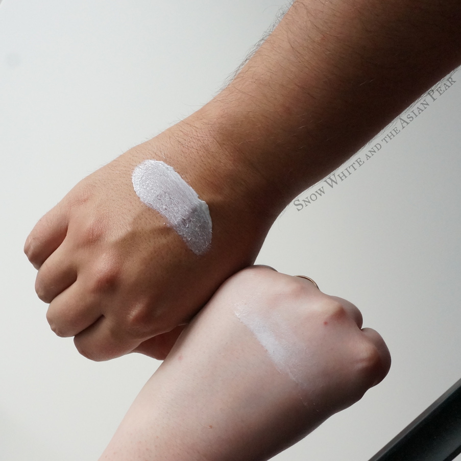 + Chất kem trắng tinh, dạng kem thuần túy không khác gì so với các loại kem chống nắng vật lý khác. Mỗi lần sử dụng nên dùng 1 lượng vừa đủ cho cả mặt và một phần cổ, hoặc nếu bôi body thì chỉ xài vừa đủ vùng da cần bôi. Kem mềm nên khá dễ tán trên da. Ban đầu bạn sẽ thấy da trắng hẳn lên do lớp white cast đặc trưng của kem chống nắng vật lý. Tuy nhiên sau khi sử dụng khoảng 1-2 phút sau, lớp trắng này sẽ tiệp chìm vào da. Da bạn trông sẽ sáng sủa hơn, một cách rất kín đáo, tự nhiên, giúp làn da của bạn sáng hơn, nhưng không thể đoán được là nhờ xài kem chống nắng đâu.