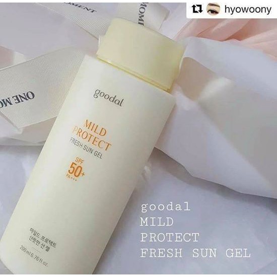 Kem chống nắng Goodal Mild Protect Fresh Sun Gel là một trong những sản phẩm đã góp phần tạo nên thương hiệu nổi tiếng Goodal trên thị trường làm đẹp Hàn, là nhãn hiệu thuộc CLIO, và được coi như MAC của Hàn Quốc đó nha các bạn. Đặc biệt dung tích sản phẩm kem chống nắng Goodal lên đến tận 200 ml và dùng cho chống nắng da mặt và cả body nữa nha.