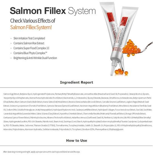 Kem dưỡng Salmon Fillex Volume Injection với chiết xuất trứng cá hồi và dầu cá hồi cùng hàm lượng lớn axit amin, vitamin thiên nhiên giúp làm sáng da, giảm thâm và mờ nếp nhăn.
