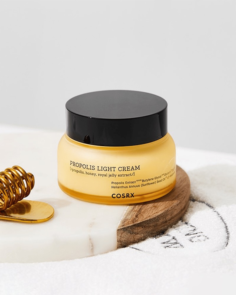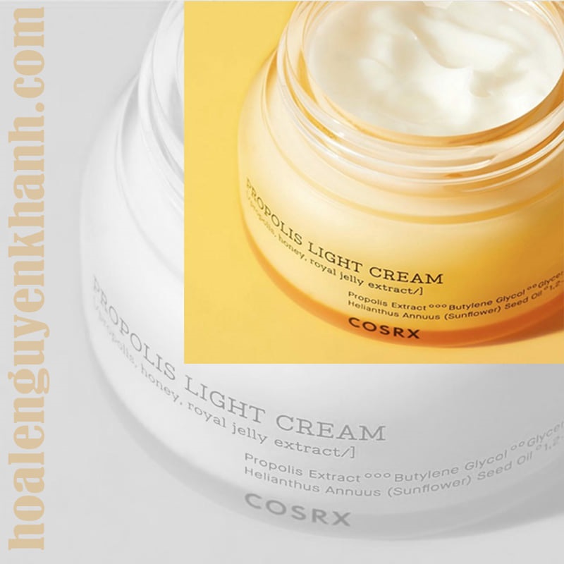 Kem dưỡng Cosrx Propolis Light Cream nằm trong bộ sưu tập Propolis của nhà COSRX. Với 65% chiết xuất keo ong, sữa ong chúa và mật ong, Cosrx Propolis Light Cream mang đến khả năng kháng viêm, kháng khuẩn, giảm tổn thương và kích ứng cực tốt, cung cấp năng lượng, tăng sức đề kháng và giúp da trẻ hoá, căng mịn, đàn hồi tốt hơn, giảm nám, tàn nhang, sạm da.