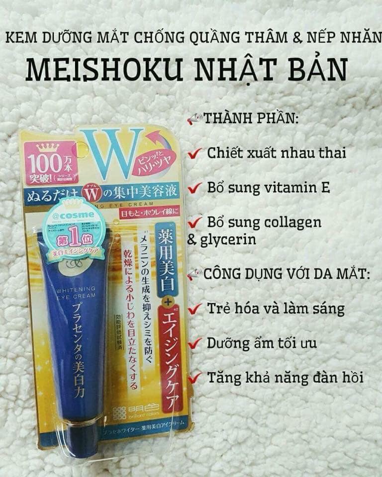 Kem dưỡng da vùng mắt giúp trị thâm và chống nhăn Meishoku Placenta Medicated Whitening Eye Cream - Dòng kem dưỡng trị thâm và chống lão hóa vùng mắt vô cùng tuyệt vời.