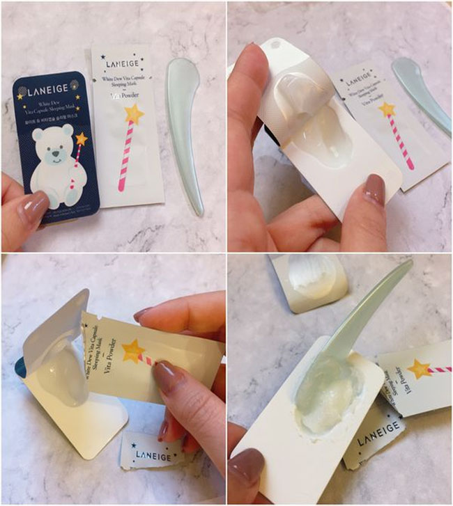 - Bạn nhớ mặt nạ ngủ dưỡng trắng da Laneige White plus Renew Capsule Sleeping Pack không ảnh hưởng đến các bước dưỡng da hằng ngày của bạn, sau khi dùng kem là bước cuối cùng thì dùng mặt nạ ngủ sẽ giữ và bảo vệ toàn bộ các bước dưỡng da của bạn lại càng tăng hiệu quả.
