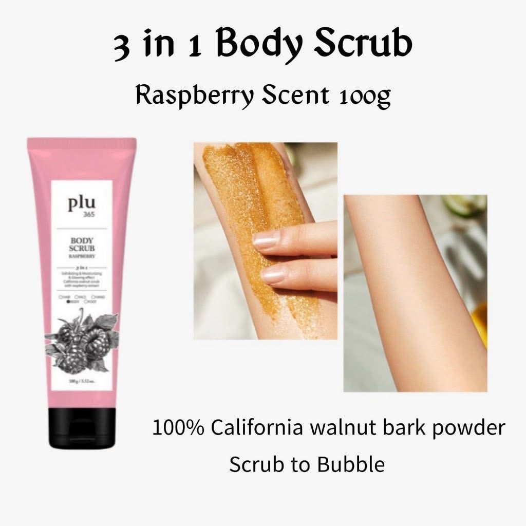 Tẩy da chết toàn thân, hương mâm xôi sảng khoái, ngọt dịu kết hợp với các thành phần khác giúp tẩy tế bào ch/ết/, dưỡng ẩm và làm sáng da hiệu quả.