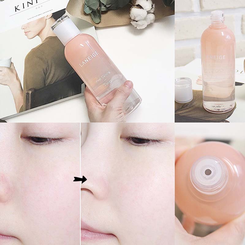 - Laneige Fresh Calming Toner là nước hoa hồng dưỡng ẩm, se lỗ chân lông, giúp cân bằng lượng nước và dầu cho da, mang lại một làn da trắng sáng, tươi mát và tràn đầy sức sống.
