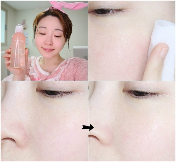 + Vỗ nhẹ để dưỡng chất hấp thụ vào da hoặc đổ nước hoa hồng ra bông tẩy trang và xoa nhẹ nhàng lên mặt theo hướng từ trong ra ngoài.