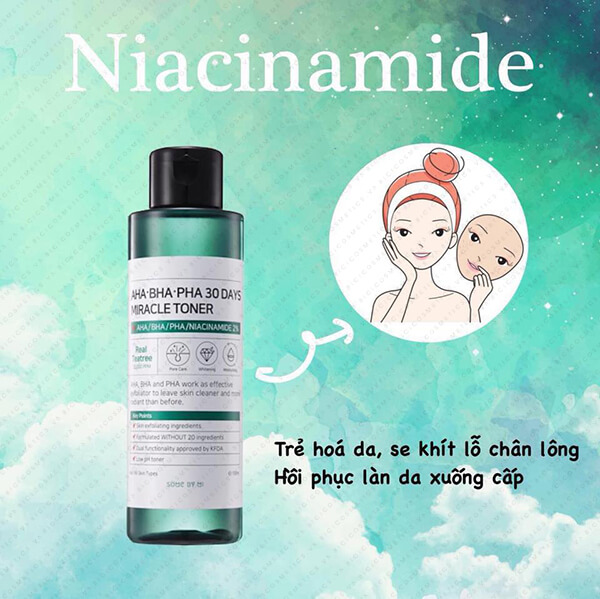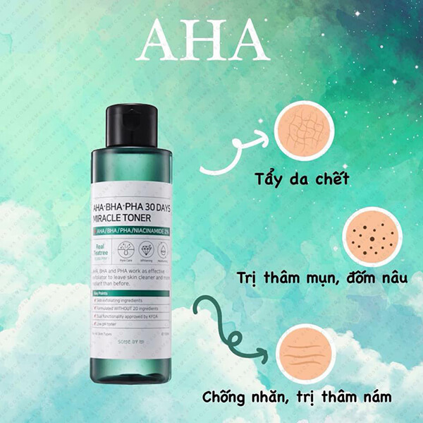 Toner AHA BHA PHA 30 Days Miracle của hãng Some by Mi vừa là toner vừa kết hợp với việc tẩy da chết sử dụng hàng ngày