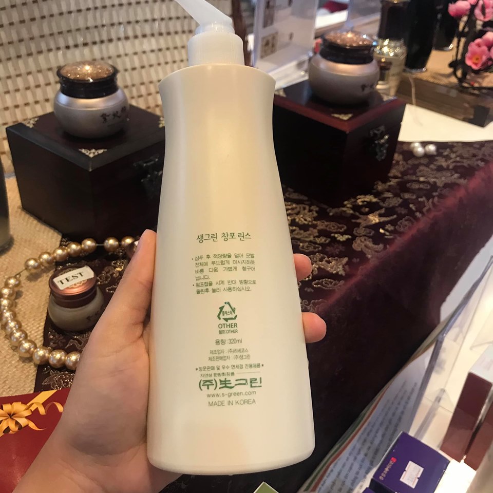 Dầu xả thảo dược Saengreen Changpo Hair Rinse có thành phần là 100% thành phần thảo mộc thiên nhiên của Hàn Quốc. Dầu gội thảo dược Saengreen là một sản phẩm trong bộ đôi dầu gội và dầu xả nổi tiếng của hãng mỹ phẩm Saengreen - Chuyên về các dòng sản phẩm thiên nhiên - cho dòng sản phẩm chăm sóc tóc.