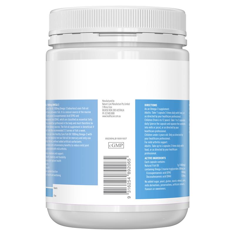 + Nhiều nghiên cứu cho thấy việc bổ sung dầu cá là cực kỳ hiệu quả với sức khỏe con người, Fish oil Healthy care Omega-3 1000mg có chứa nhiều thành phần DHA và EPA mang lại hiệu quả vượt bật cho việc điều trị các bệnh: viêm sưng, cứng khớp và làm giảm đau với những người bị đau do viêm khớp, đau lưng, đau tuyến tiền liệt.