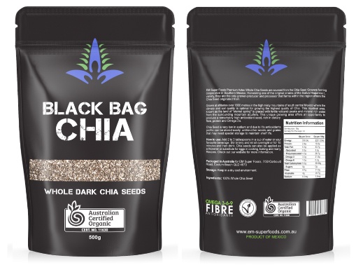 Túi hạt Chia đen Úc 500g Black Bag Chia được chứng nhận Organic. Nghĩa là trong suốt quá trình từ khi gieo trồng cho đến khi thu hoạch, chúng hoàn toàn phát triển tự nhiện và không sử dụng phân bón hóa học. Hạt Chia Úc Black Bag Chia được trồng tại Melbourne có năng xuất cao nên có hàm lượng Omega 3 cao đáng kể.