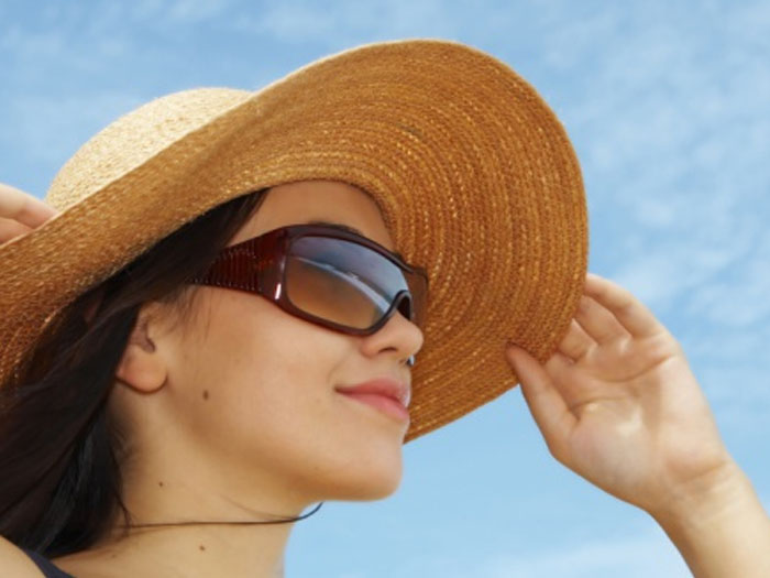 Tia UV ngoài việc gây tổn thương da, chúng cũng rất có hại cho mắt. Khi mắt tiếp xúc trực tiếp với ánh nắng mặt trời trrong thời gian dài có thể tăng nguy cơ mắc đục thủy tinh thể, bỏng giác mạc, thoái hóa hoàng điềm, thậm chí ung thư mí mắt. Do đó, bạn cần đeo kính râm trước khi ra ngoài kể cả khi trời hôm đó không có nắng, nhiều mây. Đồng thời, bạn cũng nên đội thêm mũ rộng vành khi ra nắng để bảo vệ tối đa đôi mắt của mình.