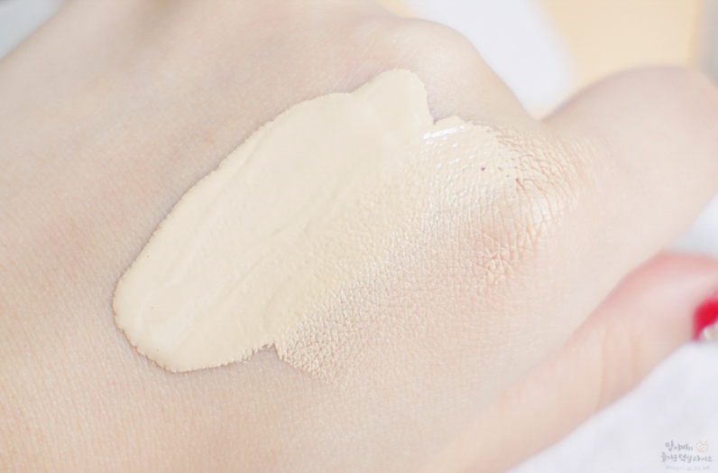 Đặc biệt với kết cấu dạng lỏng thấm khá nhanh vào da giúp làm sáng gương mặt tự nhiên và không bị lộ lớp trang điểm. Bảo đảm với các nàng khi dùng bông mút cushion cho lớp nền vừa phải, đánh lên thì gương mặt sáng hơn và cực kỳ tự nhiên. Sau khi apply lên mặt sau khoảng 10s kem nền sẽ thấm vào da và không để lại cảm giác nhờn rít.