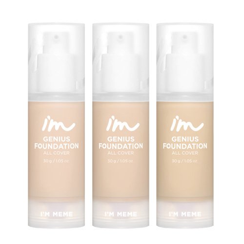 I'm Meme I'm Genius Foundation All Cover từ nhà I'm Meme với kết cấu mỏng nhẹ nhưng vẫn che phủ hoàn hảo khuyết điểm, nổi tiếng với độ che phủ tốt và lâu trôi, là loại kem nền vô cùng phù hợp để sử dụng hàng ngày.