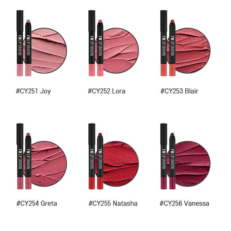 + Bên cạnh đó thì son I'm Lip Crayon Matte với thiết kế son dạng bút chì, có nút vặn không cần phải gọt, màu son lên môi lì và mướt.