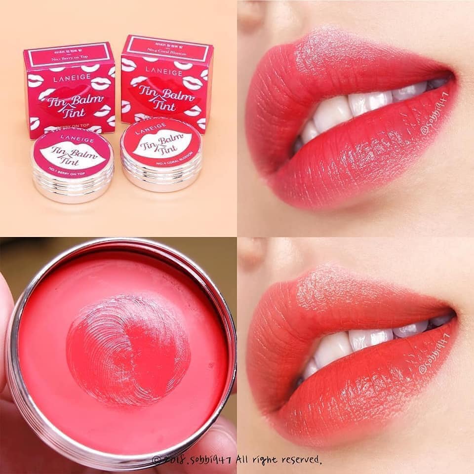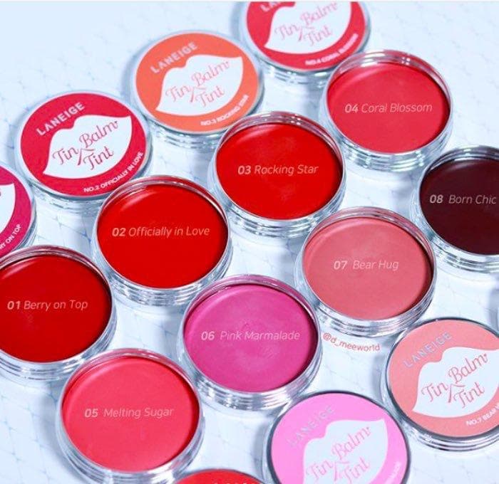 - Laneige Tin Tint Balm được thiết kế vô cùng nhỏ gọn với 8 gam màu xinh xắn, các bạn Laneige Girls có thể dễ dàng mang theo bên người và dùng khi đi học, đi làm vẫn giữ được đôi môi ánh hồng tự nhiên và tươi tắn.