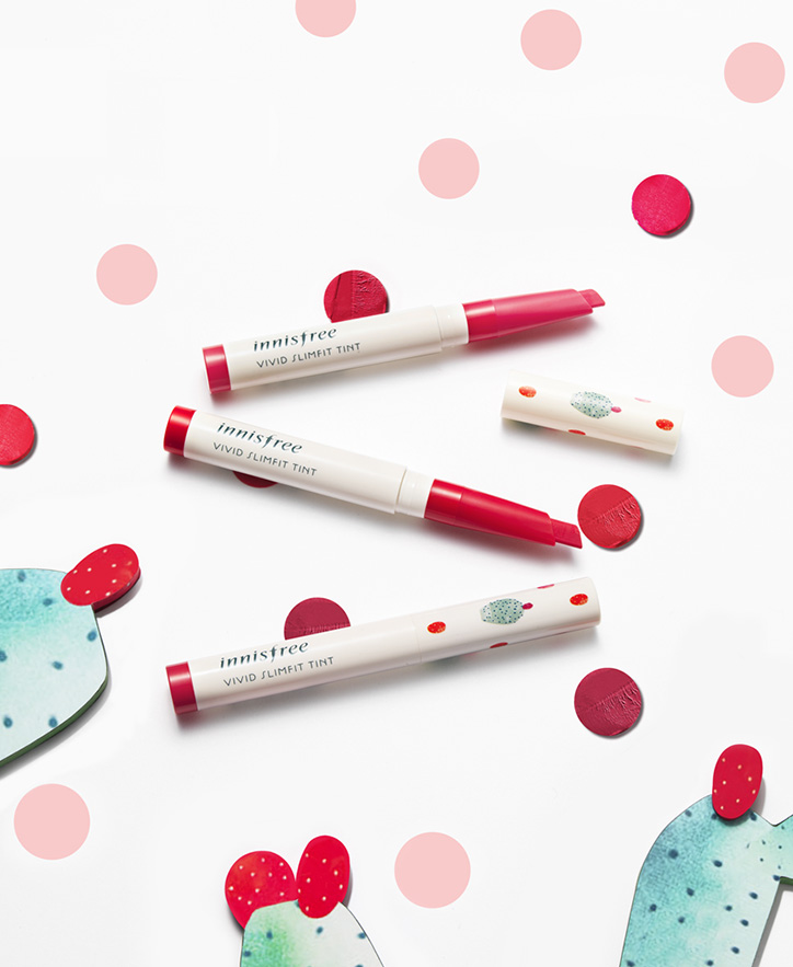 - Lấy cảm hứng từ những quả đạo căng mọng Son Innisfree Vivid Slimfit Tint cho ra màu sắc tự nhiên, tươi tắn phù hợp với mùa hè năng động và cuồng nhiệt.
