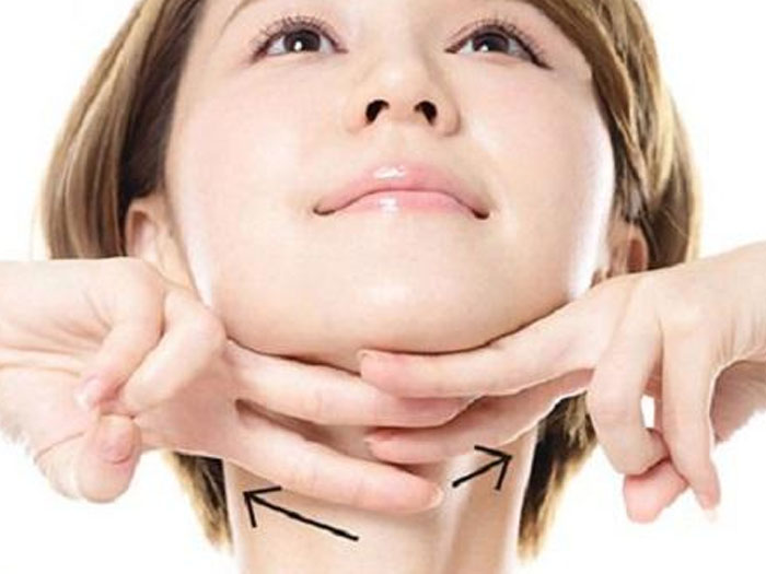 Xương hàm sẽ lộ rõ, các đường nét trên gương mặt cũng được thể hiện rõ hơn sau khi thực hiện bài tập này. Bạn đặt 2 ngón tay cái dưới cằm, 2 đầu ngón chạm vào nhau. Sau đó, từ từ trượt dọc từ cằm đến tai theo đường viền quai hàm với lực siết nhẹ, thực hiện động tác 10 lần liên tục.