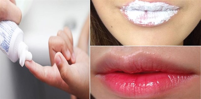 Cách làm: Tẩy trang sạch môi, lấy lượng kem đánh răng vừa đủ thoa lên khắp môi trong 5 đến 10 phút. Rồi dùng bàn chải đánh răng chà nhẹ để lấy đi các tế bào chết trên môi sau đó súc miệng và rửa môi thật sạch.