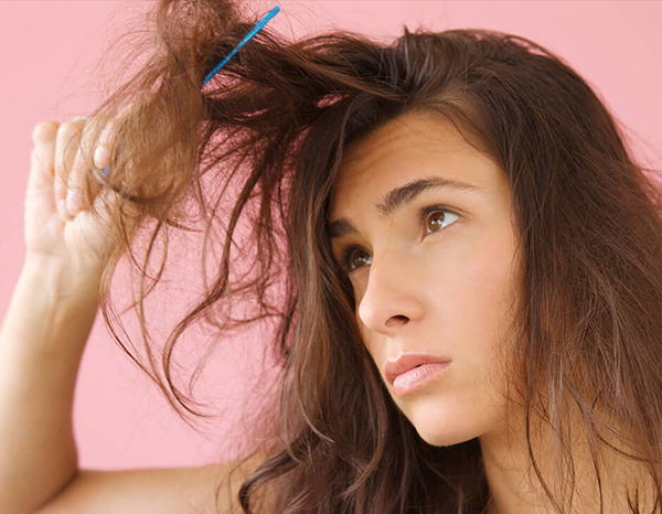 Tóc nhìn màu không sáng, dễ rối và không bóng, thiếu sức sống, rất dễ bị rụng và khô gãy. Thậm chí tồi tệ hơn, tóc khô nhìn xơ và thậm chí như một mớ rơm.