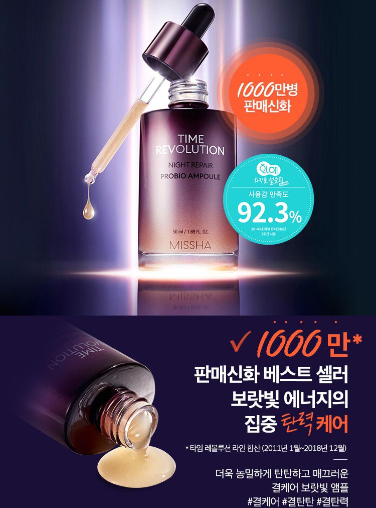 Serum dưỡng ẩm cô đặc cao cấp ban đêm dòng Time Revolution giúp chống lão hóa và săn chắc da Missha Time Revolution Night Repair Probio Ampoule