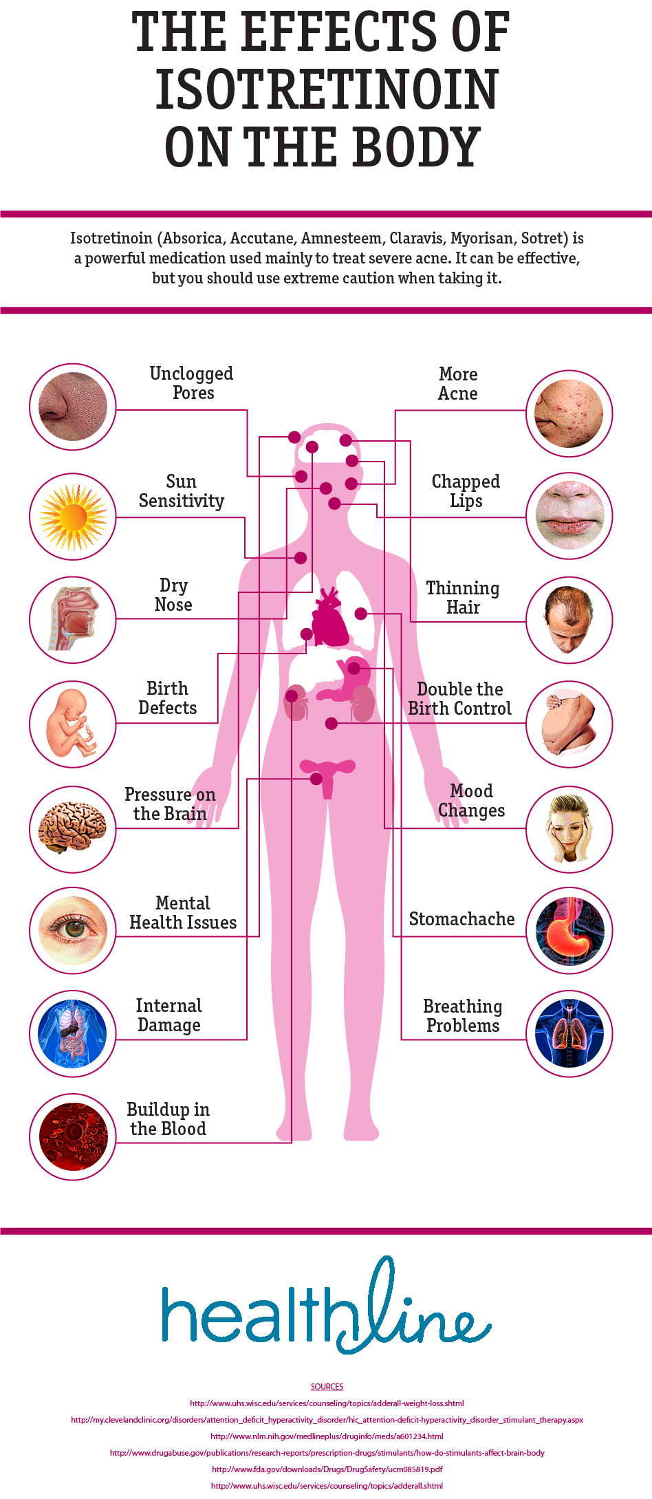 + Thứ sáu, thuốc tác động vô cũng lớn đến hệ thống thần kinh. Uống thuốc trị mụn. Isotretinoin vào sẽ làm tăng áp lực nội sọ, dẫn đến buồn nôn và nôn. Khi dùng kết hợp với các thuốc nhóm cyclin: etracycline, doxycycline, minocycline sẽ làm lắng đọng cholesterol trong não tạo hội chứng giả u não. Biểu hiện là người bệnh sẽ rất đau đầu.